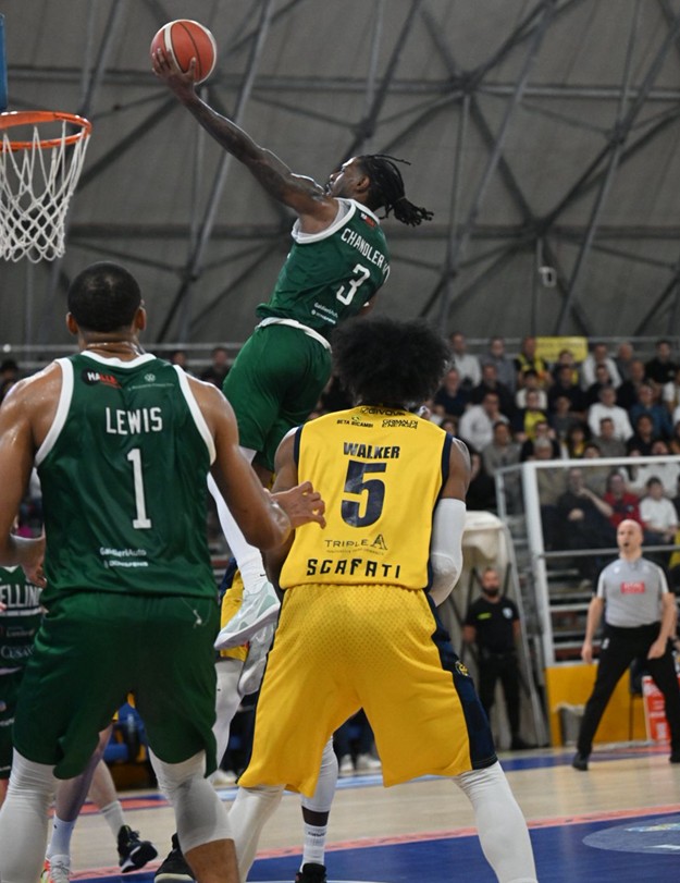 Nonostante le tante difficoltà, Avellino produce un altro sforzo, l’ultimo del match, e con un parziale di 1 a 9 si porta al – 11 (75/64 al 34’), anche se nel frattempo Chandler termina la sua partita con il quinto fallo, peraltro giudicato antisportivo, una decisione che lascia moti dubbi, anche perché a questo punto a Di Carlo restano solo tre esterni da poter utilizzare, con Jurkatamm comunque in campo con quattro falli. È l’ultimo sussulto della gara da parte dell’Unicusano che non ha più le energie per contrastare i padroni di casa che ritrovano anche il tiro da tre punti, volando fino al 93 a 71, punteggio con il quale si chiude il match.